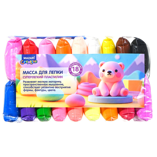 Пластилин легкий 18 цветов по 12гр Mazari 3 стека M-4197-18
